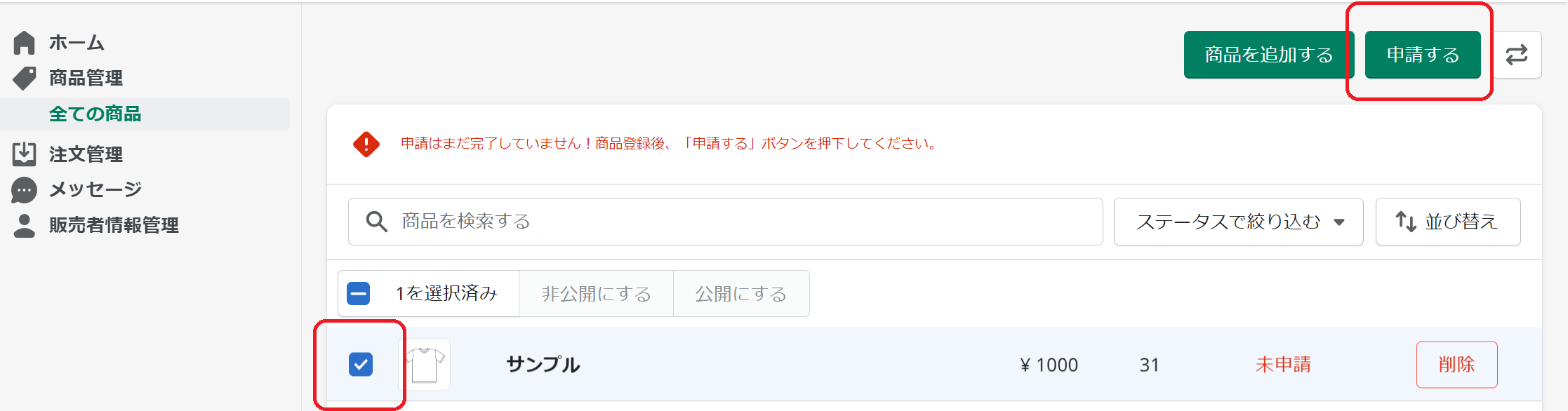 保存するだけでは商品ページは更新されませんので、必ず申請まで完了してください。